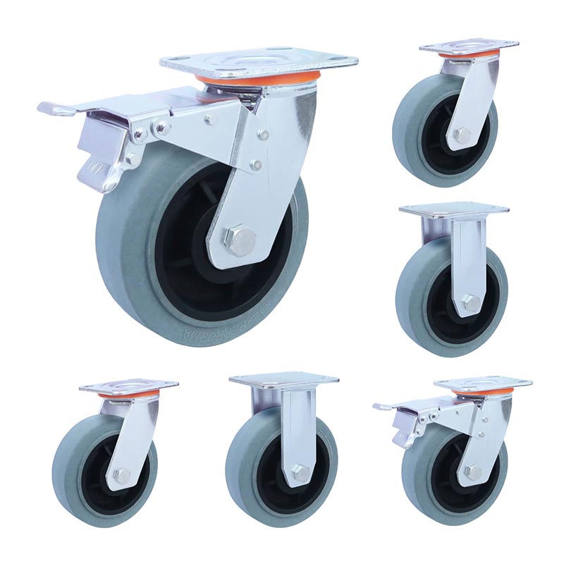 Fabrikant en fabriek: CMCL® zwenkwielen Stijl: Draaibaar / Stijf / Draaibaar met rem Maatopties: 4 inch / 5 inch / 6 inch / 8 inch Laadvermogen: 300 kg / 350 kg / 400 kg / 450 kg