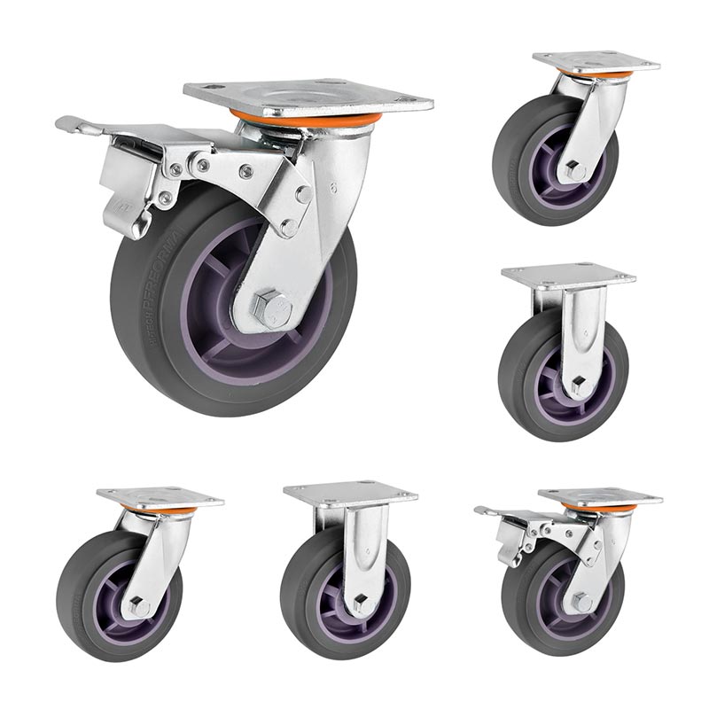 Technische specificaties voor zware zwenkwielen TPR plat loopvlak